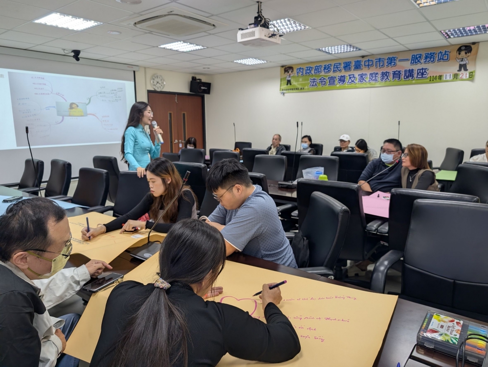 【記者張原銘、張皓傑台中報導】來自越南的新住民講師阮芳誼來臺10餘年,目前在臺中市多所國小擔任越南語母語及華語補救教學老師。她將溫柔與熱情投入教育工作,以幫助他人為樂;同時兼顧家庭,為全家人生活幸福而知足。日前她應移民署臺中市第一服務站之邀,與初到臺灣的新住民家庭分享她來臺後的不同文化體驗及經營家庭生活的點滴,現場氣氛溫馨感人。