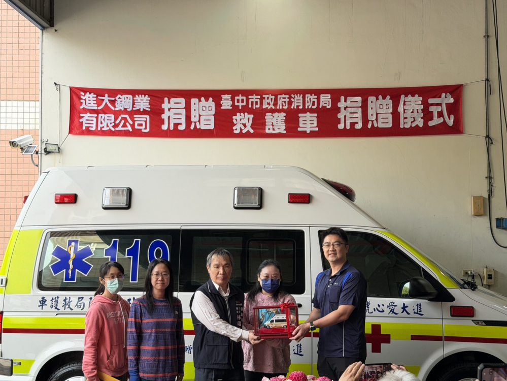 【記者林獻元台中報導】進大鋼業有限公司秉持「取之於社會、用之於社會」的企業理念,長期投入公益關懷,為強化台中市第一線緊急救護量能,捐贈一輛全新救護車及多項救護設備予台中市政府消防局,希望能提升救護裝備、縮短救護反應時間,進一步保障市民生命安全。
