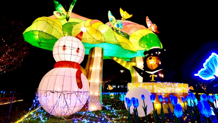 參山處表示,觀光署日前公布「2026–2027臺灣觀光雙年曆,山谷燈光節再次入選全國性觀光雙年曆。今年谷關燈區搶先開燈,主燈「泡湯喔熊」格外引人注目,「石溪蝶語」以曙鳳蝶與台灣油點草為主題,透過流水光瀑、蝴蝶光影與草本意象交錯,彷彿在谷關溪谷邊緣看見蝶群停棲、花葉隨風搖曳的景色,呈現生態與燈藝融合的奇幻棲地。