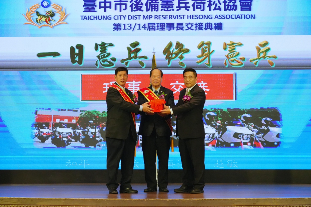 【記者林獻元台中報導】台中市後備憲兵荷松協會與梅荷夫人聯誼會長期投入社會公益,並積極協助市府提升災害防救能力,為台中的發展與安全貢獻良多,7日舉行第十三、十四屆協會理事長暨聯誼會長交接典禮,現場氣氛熱絡。