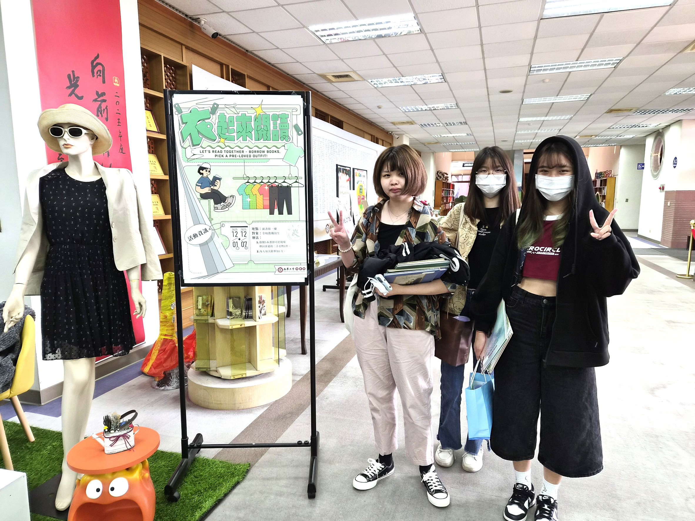 (記者任芳葵嘉義報導)南華大學圖書館於12 月舉辦「衣起來閱讀」活動,主打借閱 5 本書即可挑選一件二手衣,校長高俊雄與副校長賴淑玲不僅捐出衣服更拍攝「走秀影片」為活動行銷,成功帶動話題,活動以「讓故事循環、情感流動、物品善用」為理念,短短 7 天內吸引 162 人次參與,圖書借閱量高達 810 冊,為校園注入一股惜物愛書的暖流。