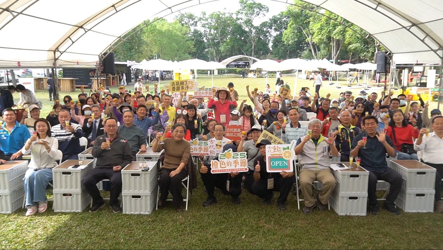 【記者蘇峯毅/雲林報導】「2025古坑橙色的季節—古坑當季在地農產行銷推廣活動」13日在古坑鄉228公園草皮正式開幕,活動為期兩天至12月14日止。現場集結當季多樣柑橘農產與親子互動體驗,吸引不少民眾攜家帶眷前來,共同感受古坑冬季最具代表性的橙香風景。
