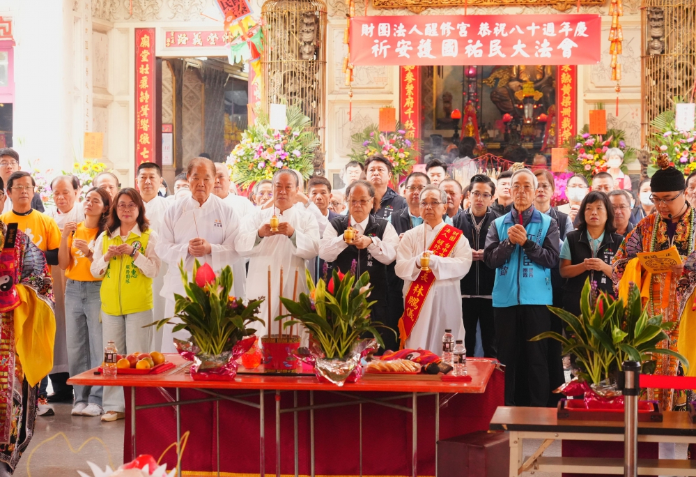 【記者林獻元台中報導】台中市醒修宮創建於民國34年,主祀關聖帝君,香火鼎盛,為地方重要信仰中心,今年適逢建宮80週年,廟方自13日起一連三天舉辦「祈安護國祐民大法會」,恭請眾神為地方消災解厄、植福保泰。