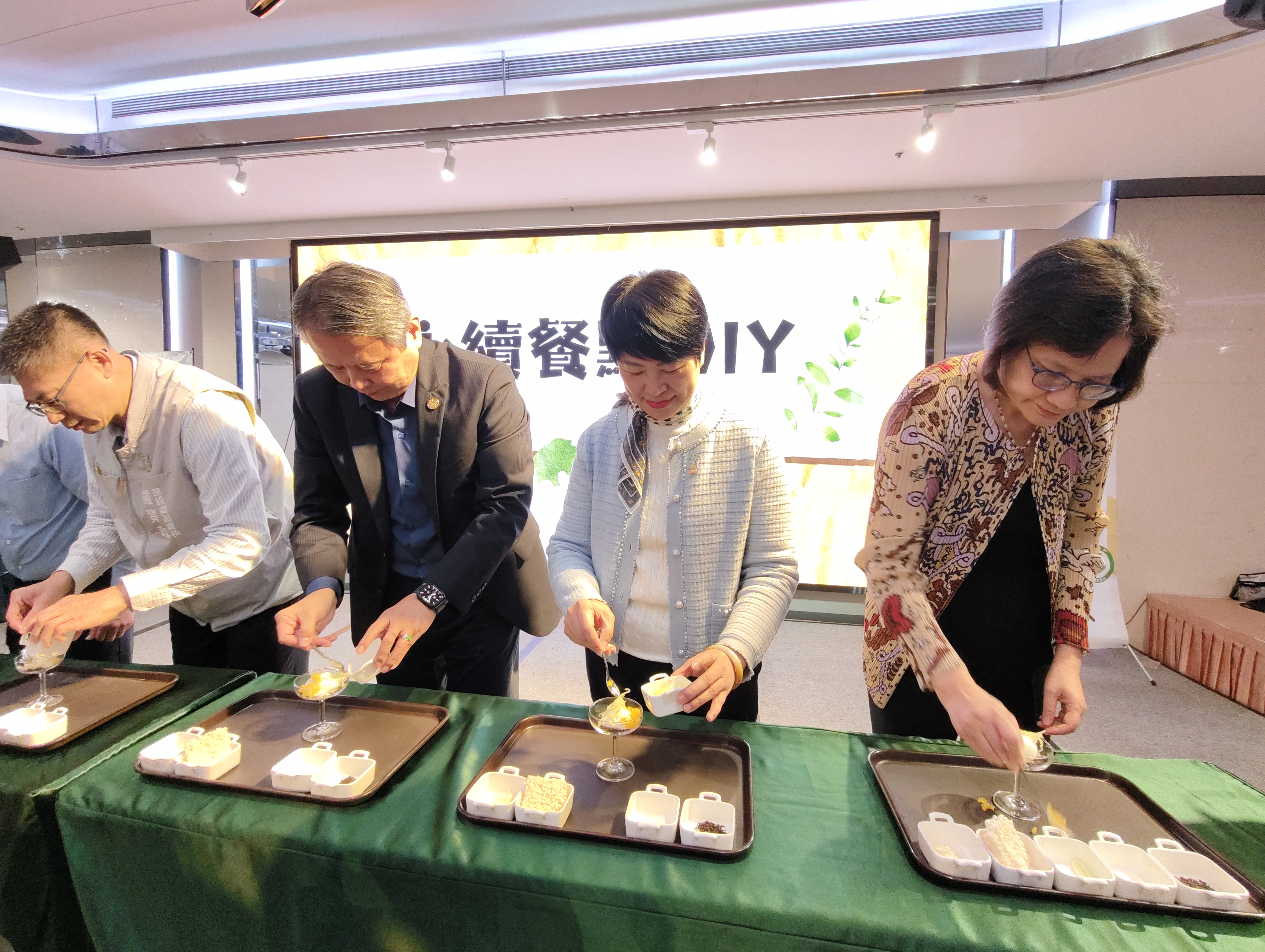 (記者任芳葵嘉義報導)嘉義大學行銷與觀光管理學系結合食農教育與環境永續,將碩士班課程以嘉義在地幸福嘉義米、鳳梨及佛手瓜為主題,修課學生分組進行發想,提出具永續概念的永續餐點企劃書,在新悦花園酒店、三光米股份有限公司協助下, 17日在新悦花園酒店舉辦「米冰淇淋佐鳳梨佛手瓜果醬」創意甜點發表,展現嘉大在教育、農業、科技與地方連結等面向深耕永續發展。
