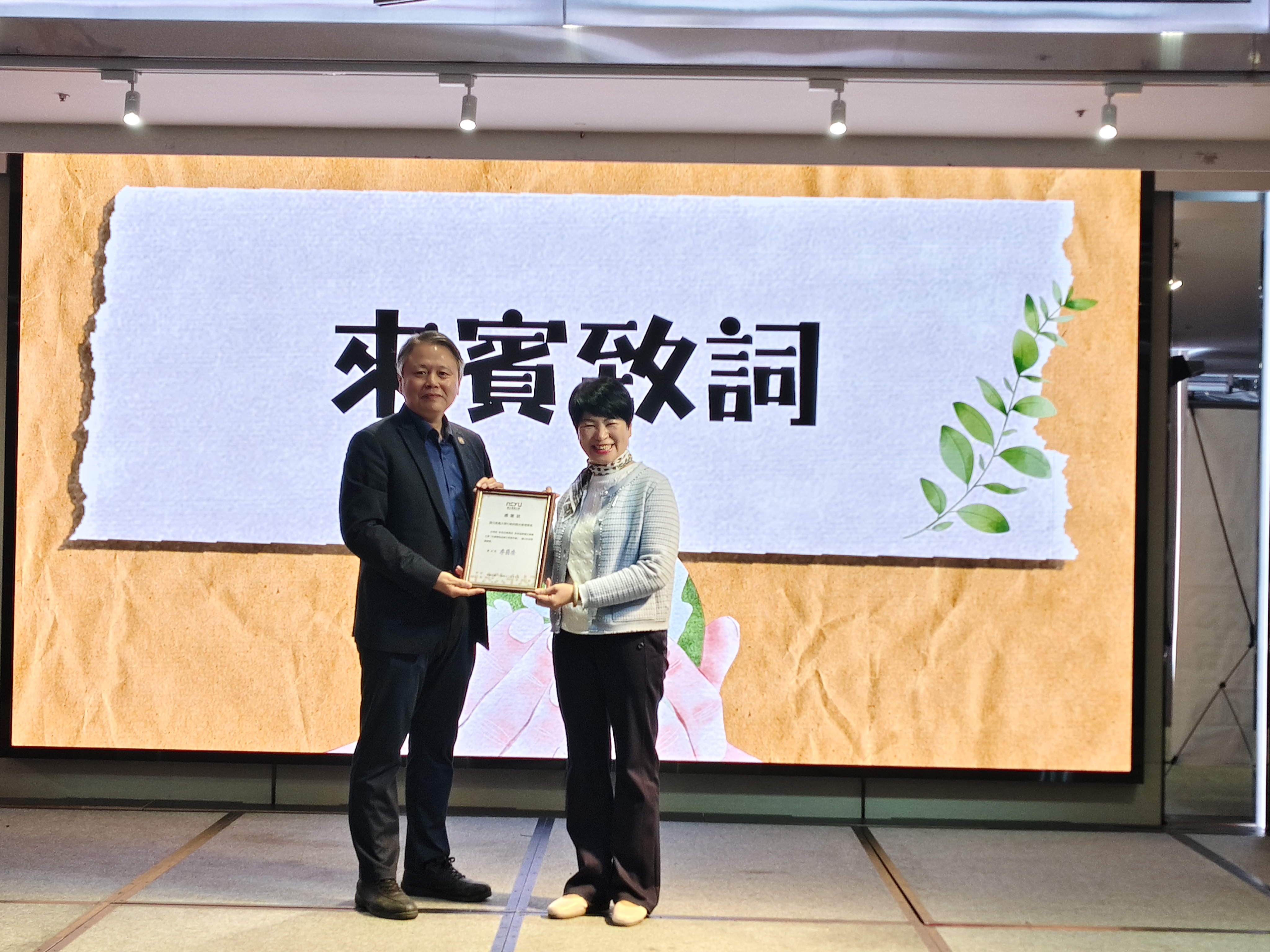 嘉大陳瑞祥副校長頒贈感謝狀予新悅花園酒店劉映雪執行董事(右)三光米林肇榮董事長肯定嘉大課程可以讓學生將所學知識和技能應用到日常生活中,讓學習不再是死讀書,他對學生團隊的創意表示讚嘆。新悦花園酒店劉映雪執行董事亦承諾將研議把學生創意甜點納入新悦花園酒店的新永續甜點之內,讓住宿旅客都能品嚐到來自嘉義的創新與風土。。(圖/記者任芳葵攝)