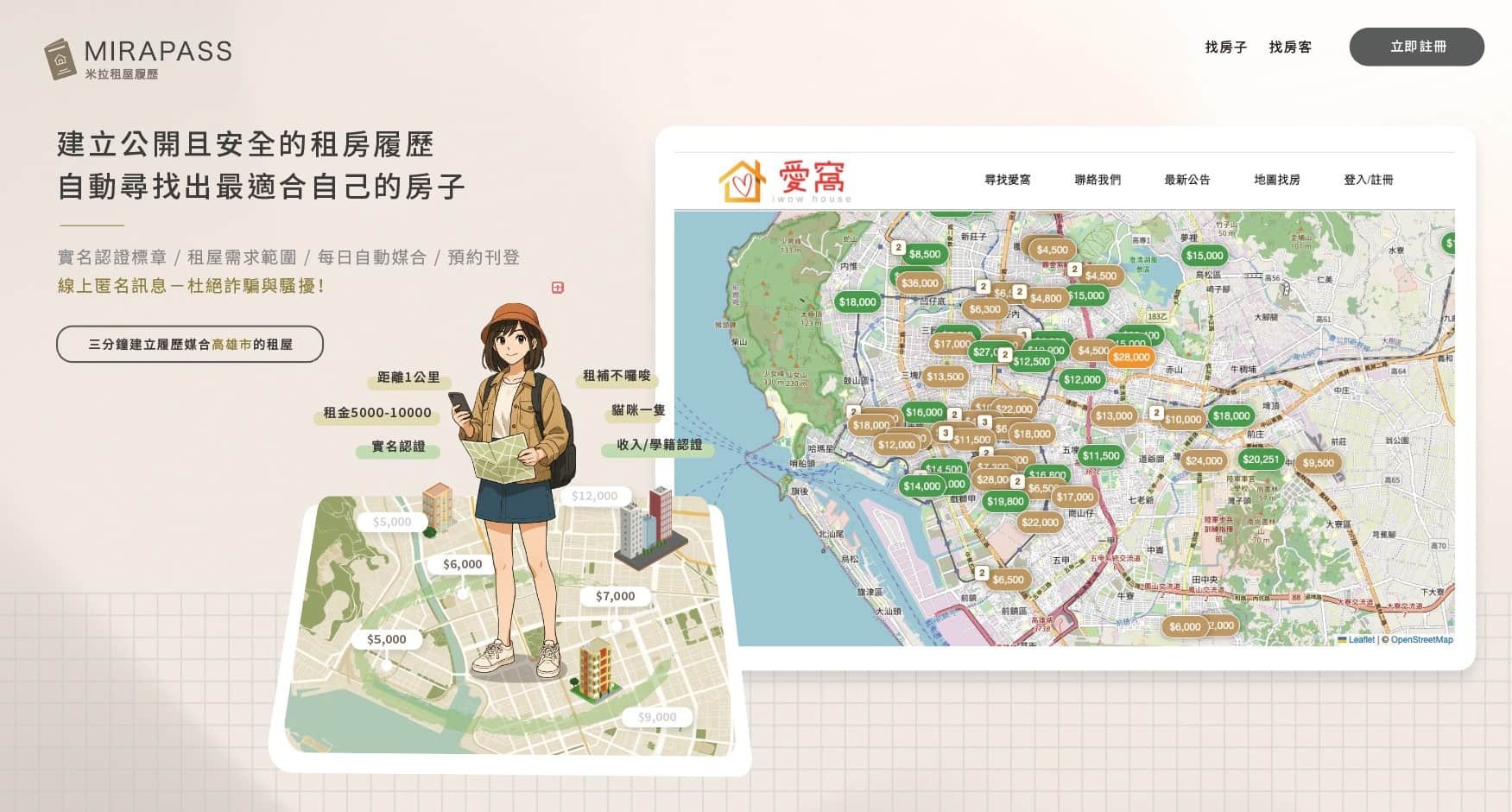 為解決傳統帶看耗時且篩選不易的痛點,集團旗下米拉科技投入大量資源,推出南台灣首創的「實名制自助看房系統」。房客透過「租屋履歷」讓需求及信用透明化,再通過嚴謹的身份認證後即可取得權限自行看屋,不僅大幅降低帶看成本,也避免房東因初期篩選不良而造成後續管理風險,提高整個租屋流程的安全性。這些創新更獲得高雄市 SBIR 創新計畫認可、取得政府補助,愛窩也強調,團隊願意持續投入研發,因為有大量真實管理經驗作為基礎,能更精準開發出市場真正需要的工具。