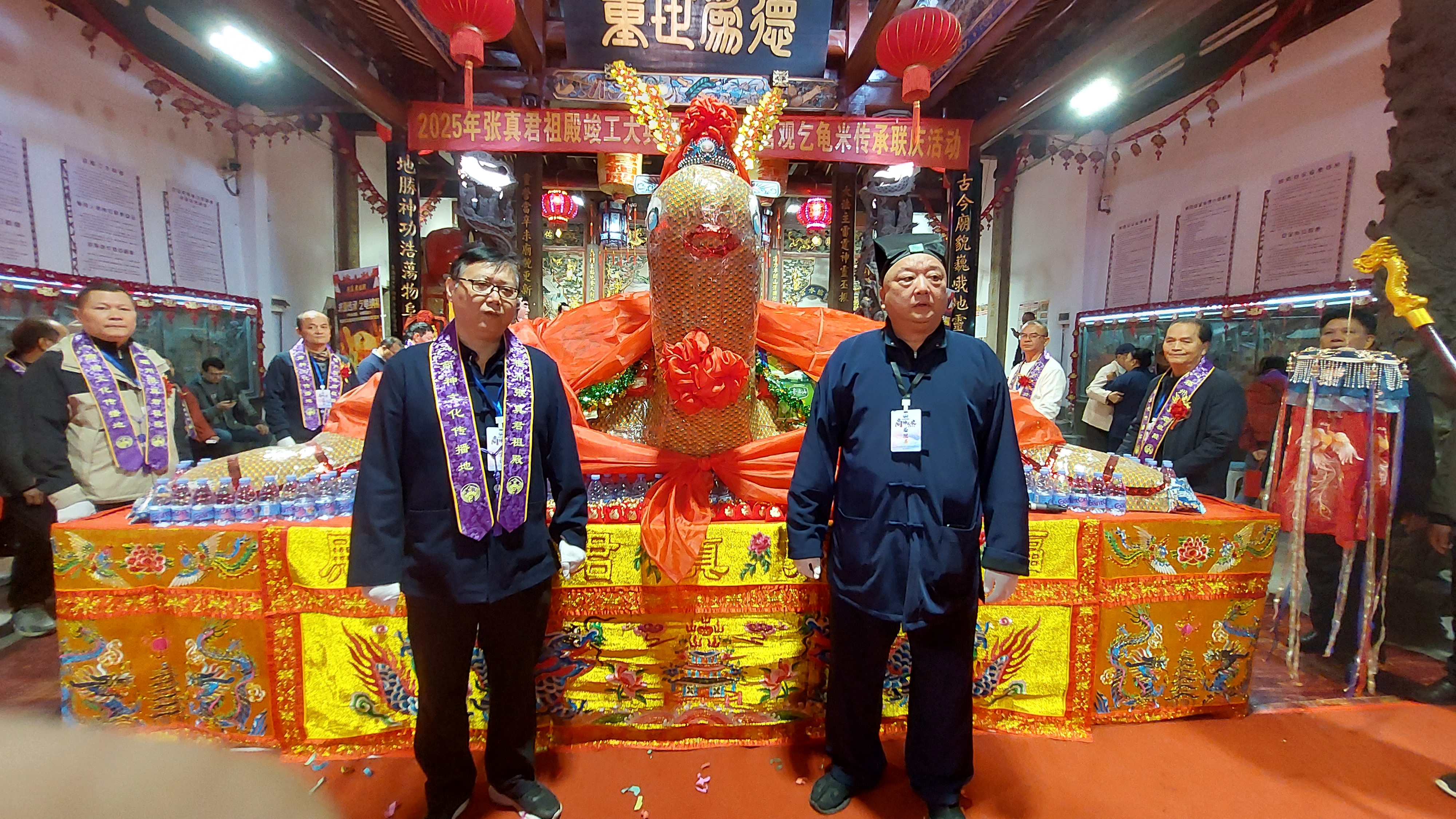 【記者康譽寶福建-福州報導】今(12月22)日,福建省福州市張真君祖殿隆重舉行「送龜」儀式,為為期一個月的傳統「乞龜」民俗活動畫下圓滿句點。本次活動中,重達16,888斤的巨型祈福「米龜」,特別邀請來自臺灣嘉義的專業團隊協助搭設,不僅是技藝的展現,更是兩岸同根同源、共同傳承民俗文化的有力見證。