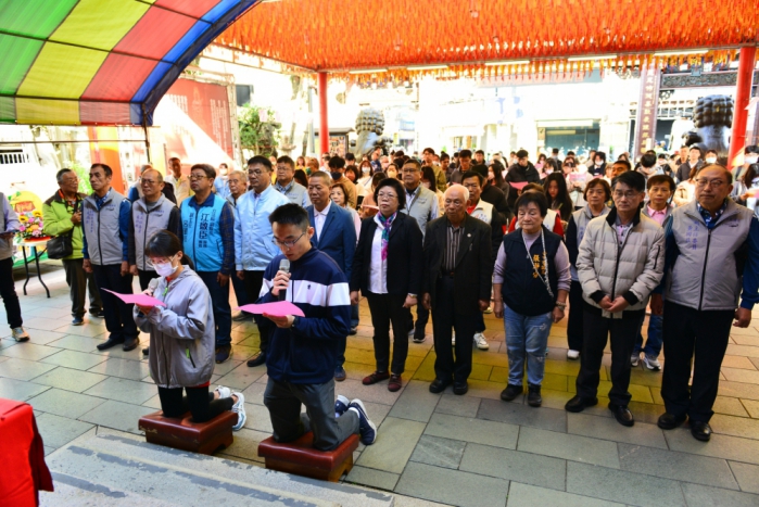 團拜儀式中恭讀感恩祈福文疏學生代表弘光科技大學周映慈及台中教育大學卓志勳同學偕表示,感謝豐原慈濟宮每年都舉辦頒發獎學金活動,給予我們在學學子肯定;心中有媽祖,在豐原媽加持賜福之下,心靈平靜中,靜心盡力增長智慧。