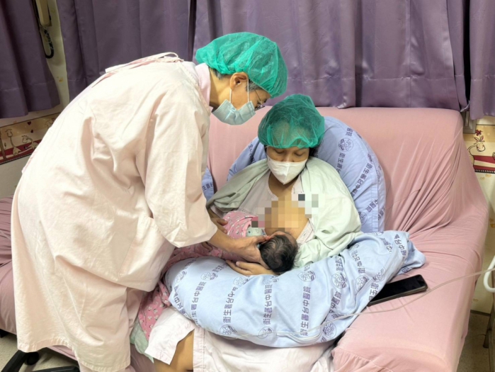 今年28歲印尼籍孕婦莉亞(譯名)今天凌晨在老公陪同下到醫院急診,她說自己凌晨1點多開始肚子痛,覺得可能快要生了,院方緊急通知婦產科劉仁杰主任,並幫孕婦做相關產前檢查,急送產房待產,產婦在清晨7點多順利產下一女,體重2470 公克,母女均安;媽媽並在休息後在中午左右幫兩人第一個寶寶親餵母乳,寶寶健康有活力用力吸吮著母奶,相當可愛。
