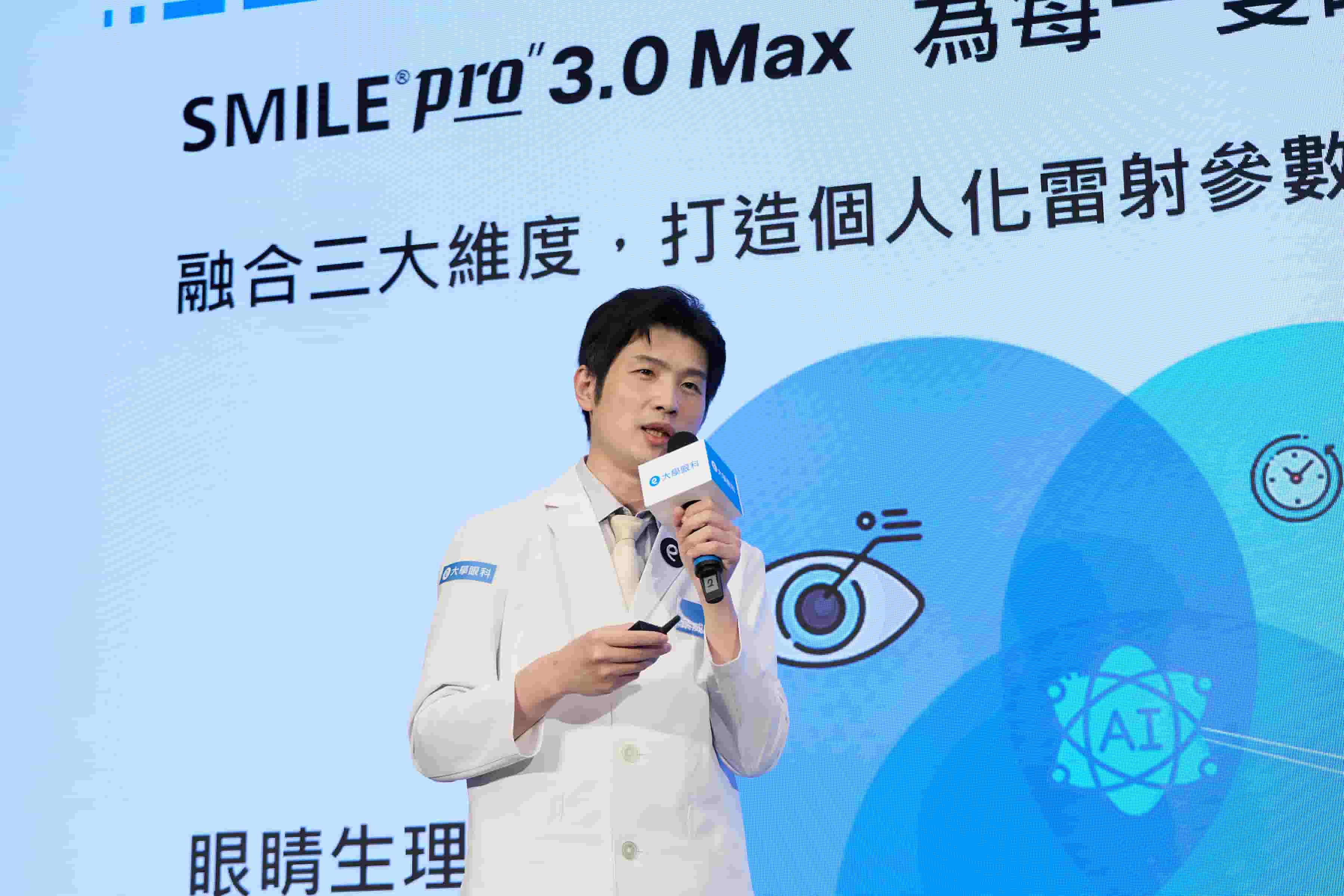▲大學眼科院長葉威毅醫師分享近視及老花雷射的矯正,個人化的數據極為重要,SMILE Pro 3.0 Max讓醫師能更精準的為每位患者制訂專屬個人化近視老花矯正方案