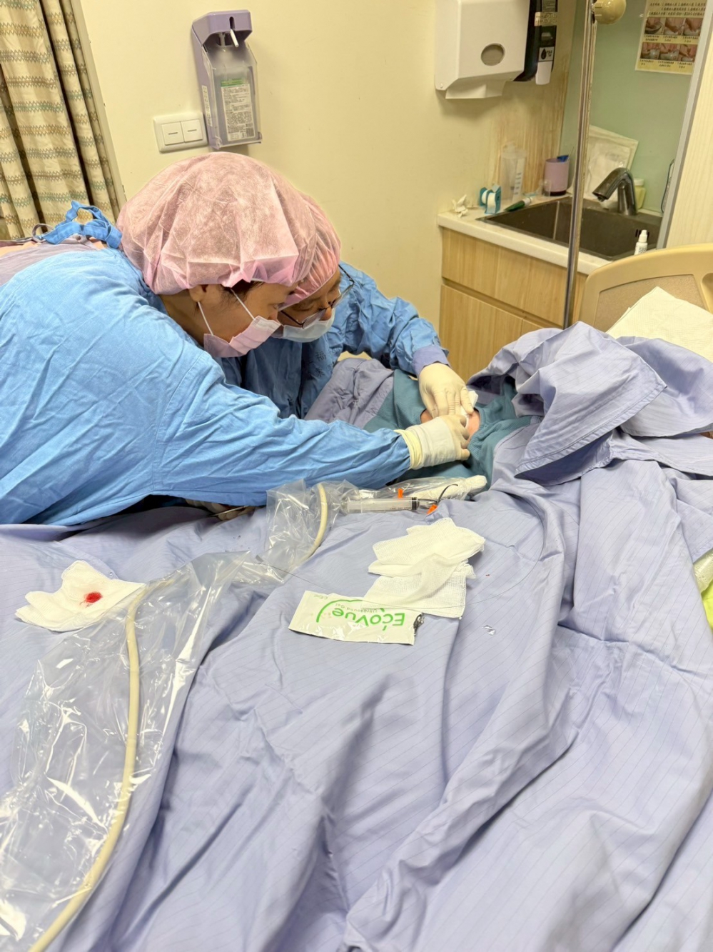 在建置PICC長期點滴管路過程中,醫療團隊全程使用超音波引導,並嚴格遵守無菌操作規範,確保管路置入位置更精準且更安全。