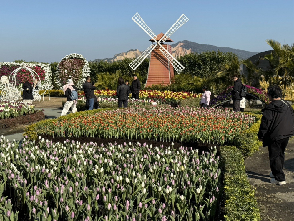 遊客來到中社花海,除了欣賞荷蘭鬱金香,八公頃餘的花園中還有百合花、彩色海芋、彩色非洲菊、向日葵花、一串紅、紫色鼠尾草、麥桿菊、炮仗花等的七彩花田,加上最壯觀的背景─火炎山襯托,花園裡每個轉身都是美麗的風景!