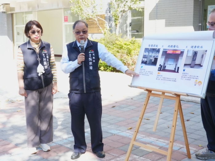 另增設2台淨水飲水機,以及音響、投影等設備,所有新設備皆符合節能環保標準,不僅有效降低能源消耗與維護成本,也大幅提升場地舒適度與活動品質,讓長者及里民使用起來更加安心便利。