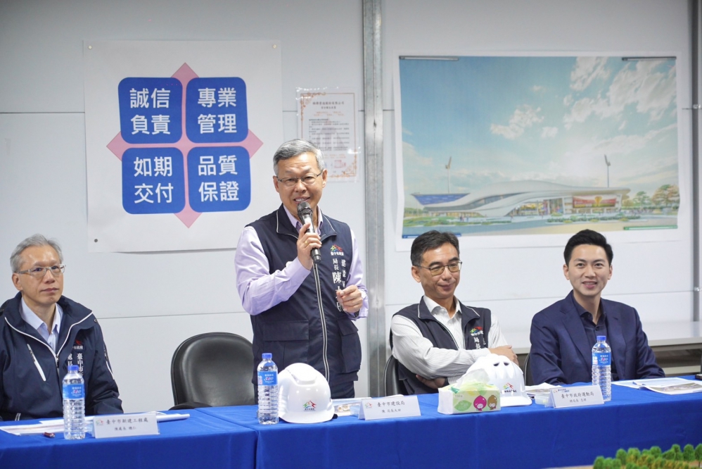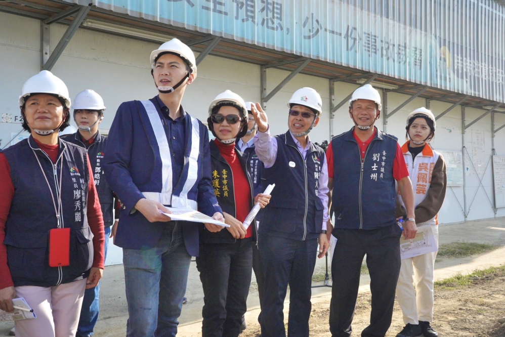 台中市政府建設局表示,為掌握工程進展與施工品質,局長陳大田15日特別前往工地視察,運動局長游志祥也一同到場勉勵施工團隊,持續全力以赴,立委廖偉翔、市議員朱暖英、劉士州、南屯區長林秋萬及鎮平里廖秀麗皆親自到場,另市議員何文海、吳佩芸也派代表到場關心,共同見證工程邁向重要里程碑,期盼園區早日完工啟用。