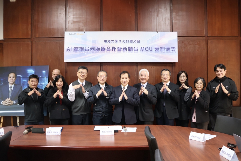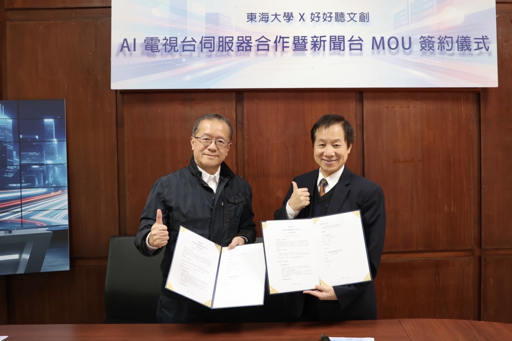 甫建置高階伺服器算力中心的東海大學,13日於第一會議室與好好聽文創傳媒公司簽署「AI電視台伺服器合作暨新聞台MOU」,宣布聯手推出全新「AI新聞台」,將高階算力投入AI新聞產製,盼以科技賦能學術研究與學習。好好聽文創董事長潘祖蔭表示,此平台歷經近一年系統開發與測試才完成,打造可自主運作的AI新聞與影音平台。他強調,影音內容生成對於算力需求相當高,正是看準東海的算力中心能提供穩定且高效的運算效能,提升影音產製的「品質」與「產量」,未來文字、聲音與影像皆可在同一平台轉換生成,為AI教育與應用開創嶄新可能。