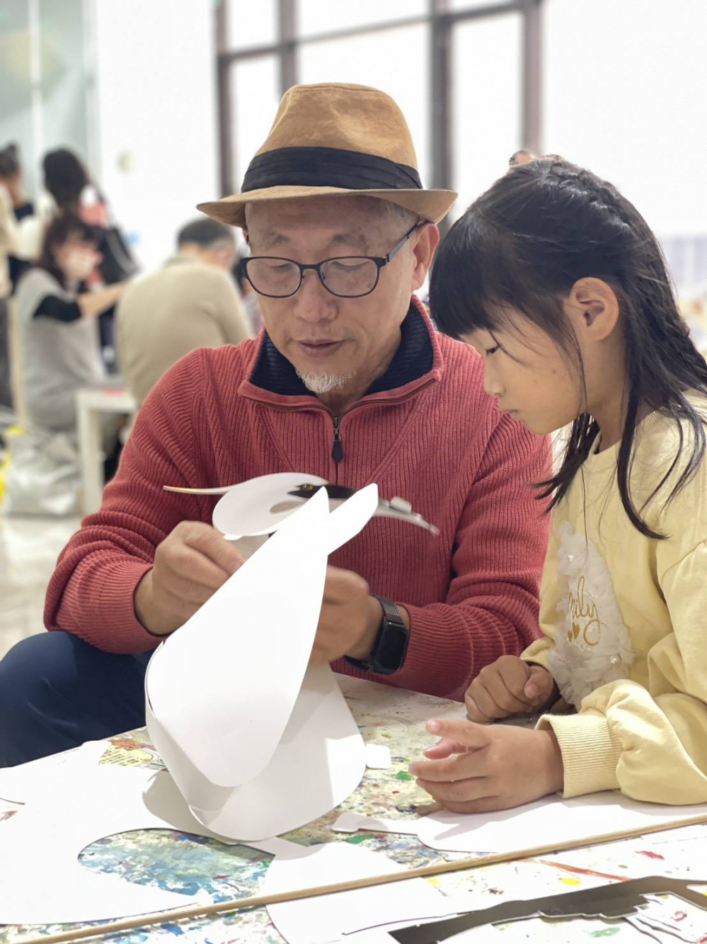 隨後的講座與工作坊階段,由公共藝術雕塑家余燈銓老師親自分享創作歷程,引導民眾思考雕塑如何記錄生命不同階段的情感與記憶。現場民眾在老師帶領下動手進行白鷺鷥紙雕手作,將感受、想像與回憶轉化為立體作品,過程療癒且充滿成就感,也讓公共藝術從單向「觀看」轉化為雙向「參與」。