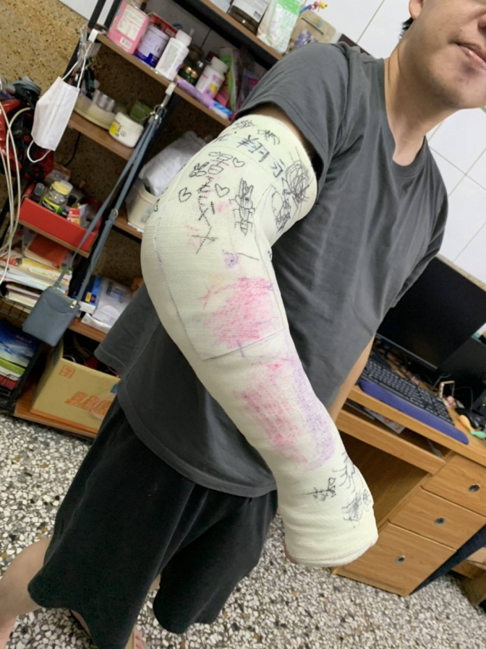 臺中醫院高壓氧中心主任暨骨科醫師黃敏旭表示,尤先生送醫時右手肘腫脹變形,屬於高能量創傷。經緊急施行關節復位手術,並進行人工骨植入重建骨骼結構,術後搭配負壓傷口照護減輕軟組織腫脹,以及高壓氧治療促進組織修復,形成「雙壓」輔助治療模式,讓傷口與骨骼得以同步復原,目前已能順利回到原本的油漆工作。