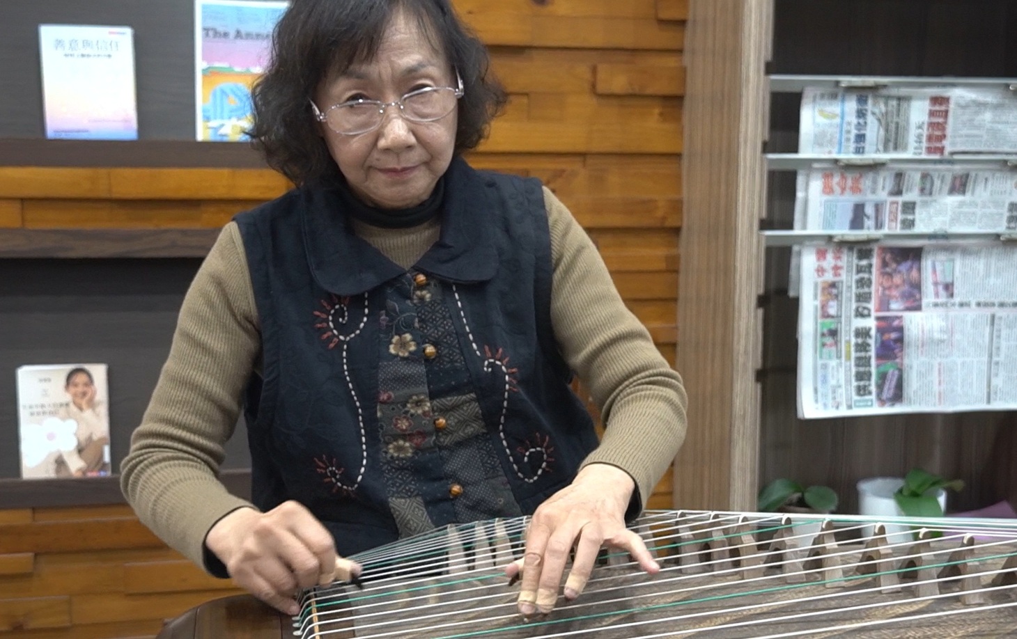 北港高中特別邀請古箏名家吳美蓮老師現場演奏,悠揚琴音與書畫藝術相互輝映,讓與會師生與來賓沉浸在詩書畫藝交融的年節氛圍中。(圖/記者蘇榮泉攝)