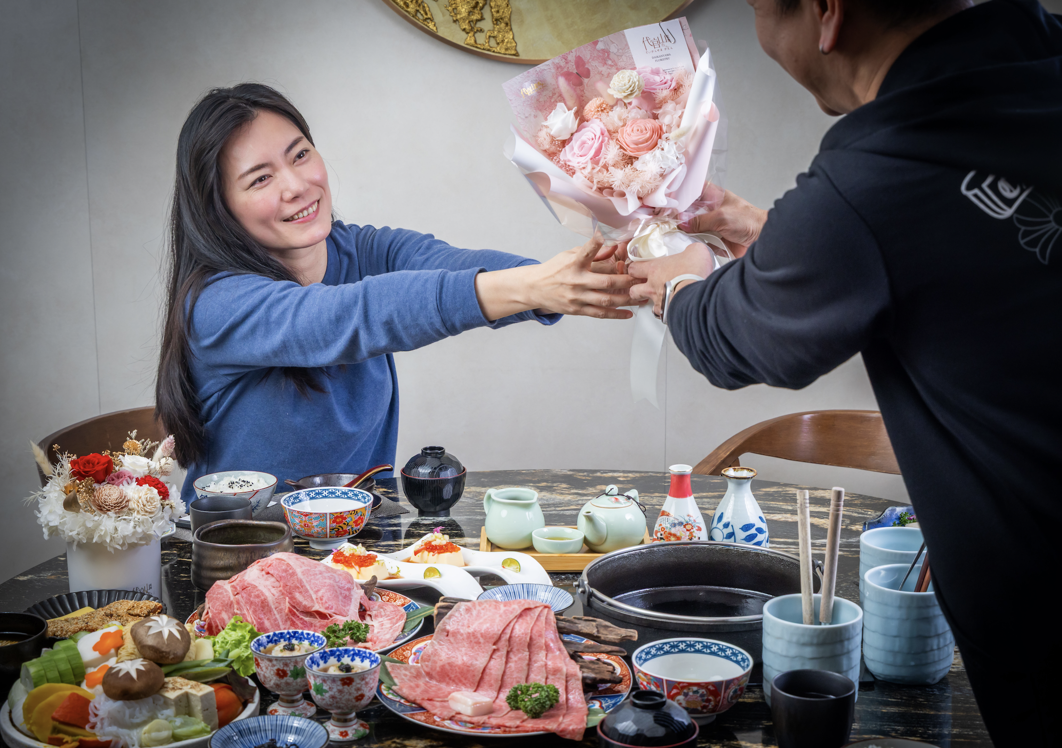 代官山花苑推出「花束一條龍服務」,提供客製化花束,可指定色系、風格與預算,並可配合 訂位流程安排送達,為用餐時刻增添儀式感與驚喜。即日起,消費者可透過私訊或訂位時加 註「花束服務」完成預訂。目前,此服務已與多家餐飲品牌合作,包括橋山·壽喜燒、二本松 涮涮屋、山上走走、AW Cafe Wine Bistro、AW 紅酒吧、長孫 Shabu、大啼 Shabu、異塵 CELLAR LOUNGE BAR、祇園·禪院壽喜燒等,為用餐與送禮帶來全新體驗,讓每一次相聚成 為傳遞祝福的最佳時光。