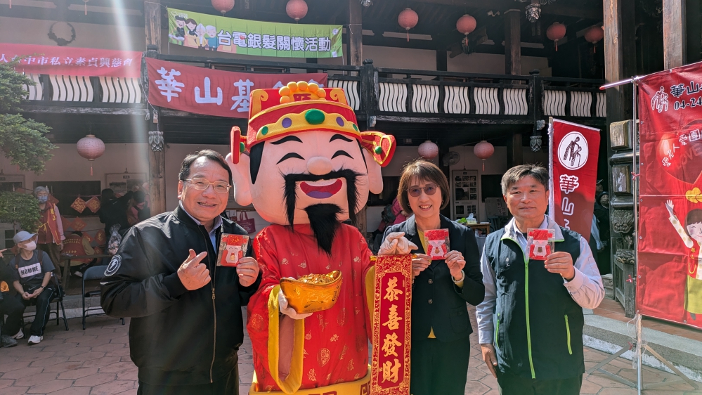 【記者張原銘、張皓傑台中報導】寒風漸冷冽,農曆春節近了,為讓弱勢獨居長輩感受社會溫暖,台電台中區處顏錦義處長、台中供電區營運處邱文宏副處長及南投區處林玉芳副處長帶領台電逾20位志工,攜手華山基金會,於1月23(五)帶領100位長輩走進古色古香的台中霧峰林家花園,提前體驗濃厚的節慶氛圍,欣賞幼兒園小朋友帶來的太鼓表演、春節趣味手作、與財神爺同樂、欣賞薩克斯風表演、聆聽防詐騙宣導和有趣的猜燈謎活動,活動精彩豐富,讓長輩歡度一個充滿愛與支持的難忘時光。