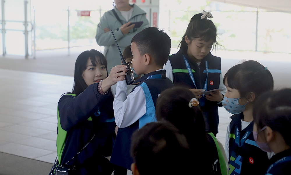 活動現場,小朋友們穿上特製的小小站長背心,個個架勢十足。在站務人員的帶領下,孩子們體驗售票、利用對講機呼叫等任務,並在闖關中學習「緊握扶手、站穩踏階」等乘車安全禮儀。