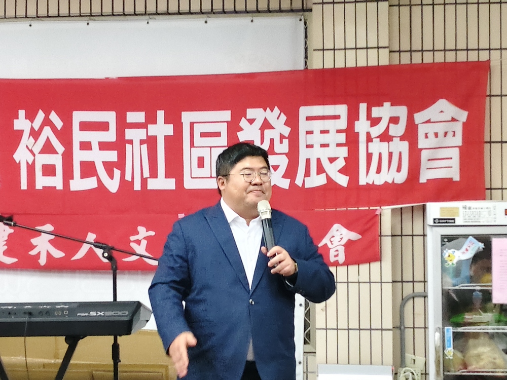 立委蔡易餘出席中埔裕民社區新任理事長交接,肯定社區服務人員的付出。(圖/記者任芳葵攝)
