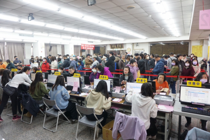 董事長蕭清杰到場關心作業流程,看到工讀生熟練操作,相當滿意,也祝福在場鄉親健康平安。他說,萬和宮26日開始受理安燈,亦即先行輸入電腦存檔,3月10日植斗法會時開燈。