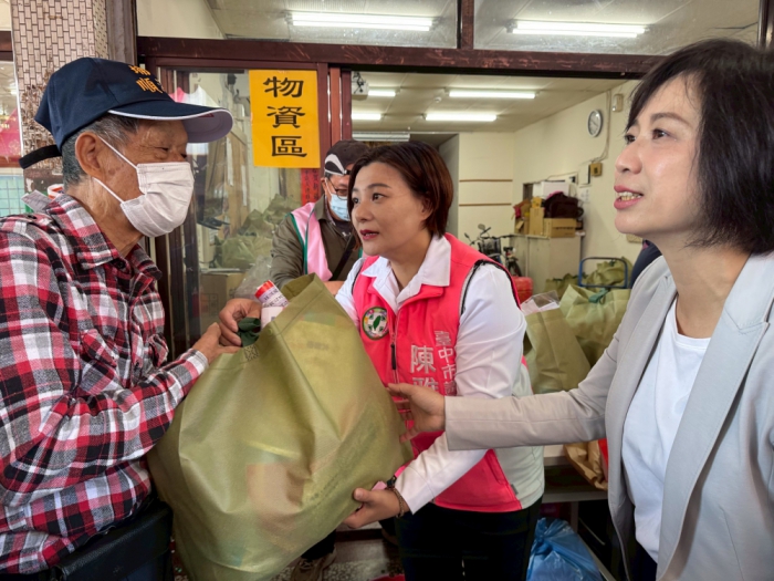 民進黨台中市長參選人何欣純也到場關心民眾,與長輩親切寒暄。她表示,「寒冬送暖」能連續14年不間斷,靠的不是口號,而是一群人長期累積的信任與實際行動。