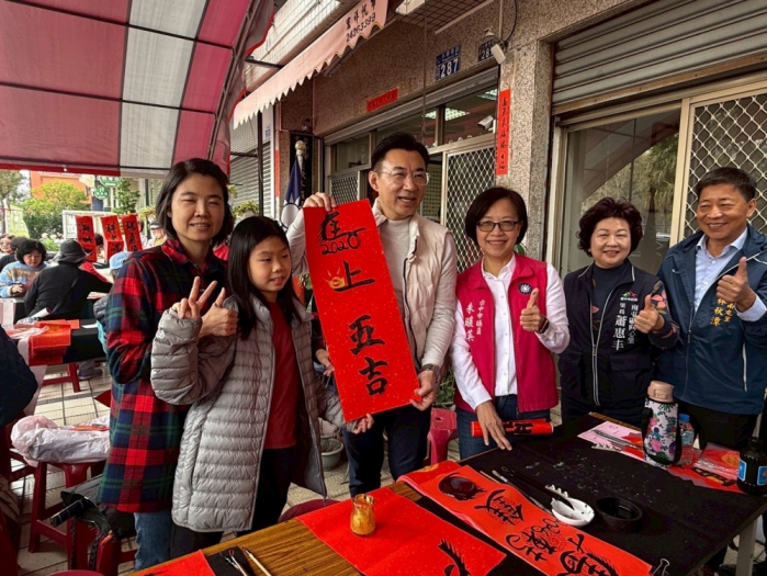 市議員朱暖英表示,寫春聯活動今年已舉辦第14年,為了讓鄉親在等待領取春聯的同時,也規劃「新春茶席」,讓民眾品嚐茗茶,在氤氳茶香中互道祝禱、交流情誼。另外,江啟臣副院長也特前來向領取春聯的民眾祝福,更和永春國小五年級的小朋友聯手創作「馬上五吉」的春聯來祝福大家,現場活動熱鬧非凡。