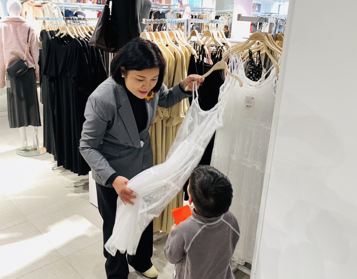 NET服飾品牌董事長黃文貞捐贈每位孩子2,000元提貨券,由張麗善縣長發送並帶領孩子們前往北港門市選購新衣。(記者蘇峯毅攝)