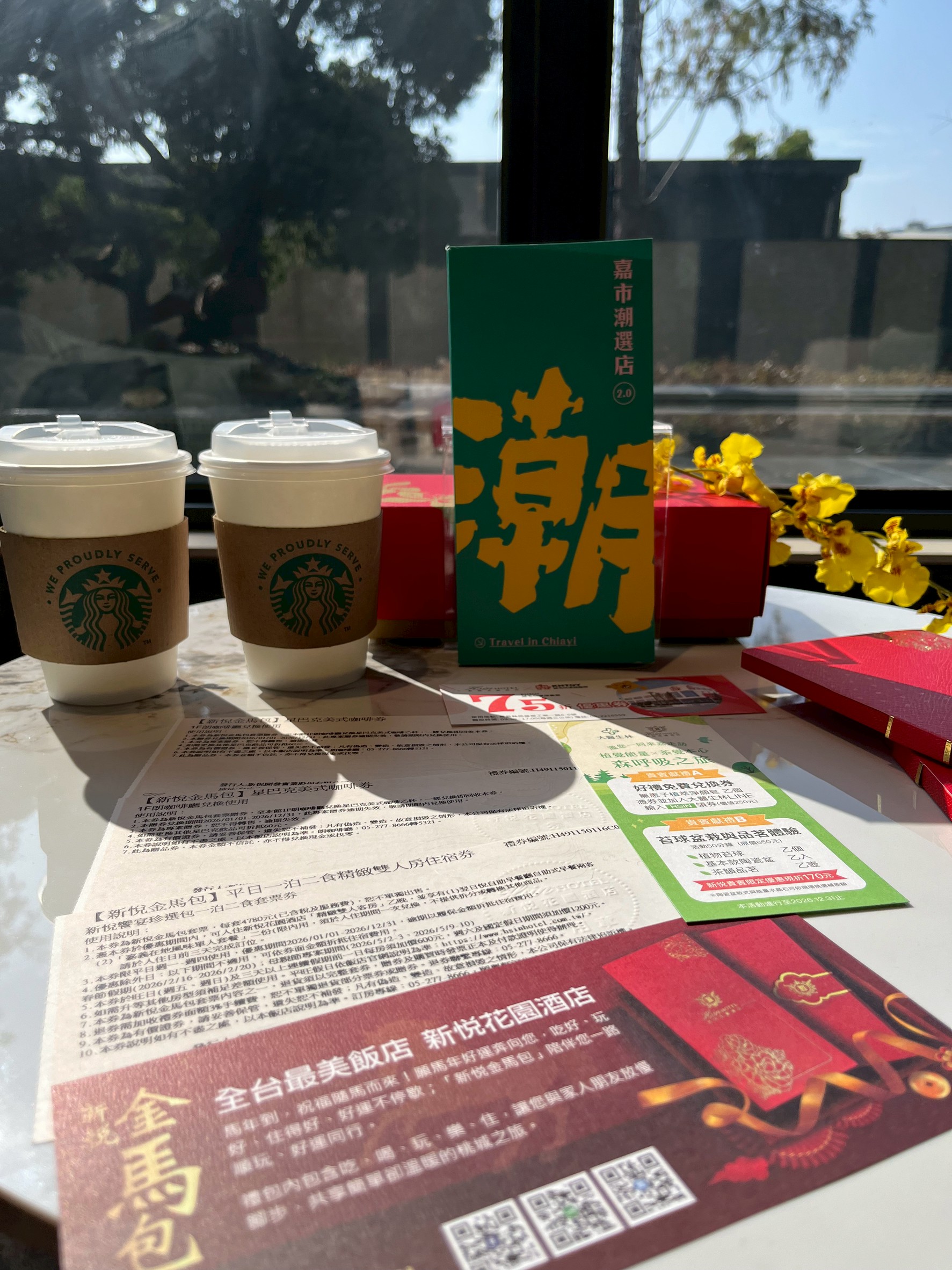 【新悦金馬包】提供兩種方案選擇,一泊一食方案3180元/套,價格親切、輕鬆入手;一泊二食方案4780元/套,讓旅人依需求彈性選擇,享受更完整的假期體驗。【新悦金馬包】內容豐富,包含平日精緻雙人房住宿券一張,讓旅人在舒適靜謐的空間中放慢步調、好好休息,一泊二食專案,再加贈嘉義在地風味單人套餐二份,以及新悦星巴克美式咖啡二杯,為旅程注入溫暖能量,同時結合在地特色與親子體驗,內含「大醫生技體驗券」及「金興娃娃優惠折價券」。