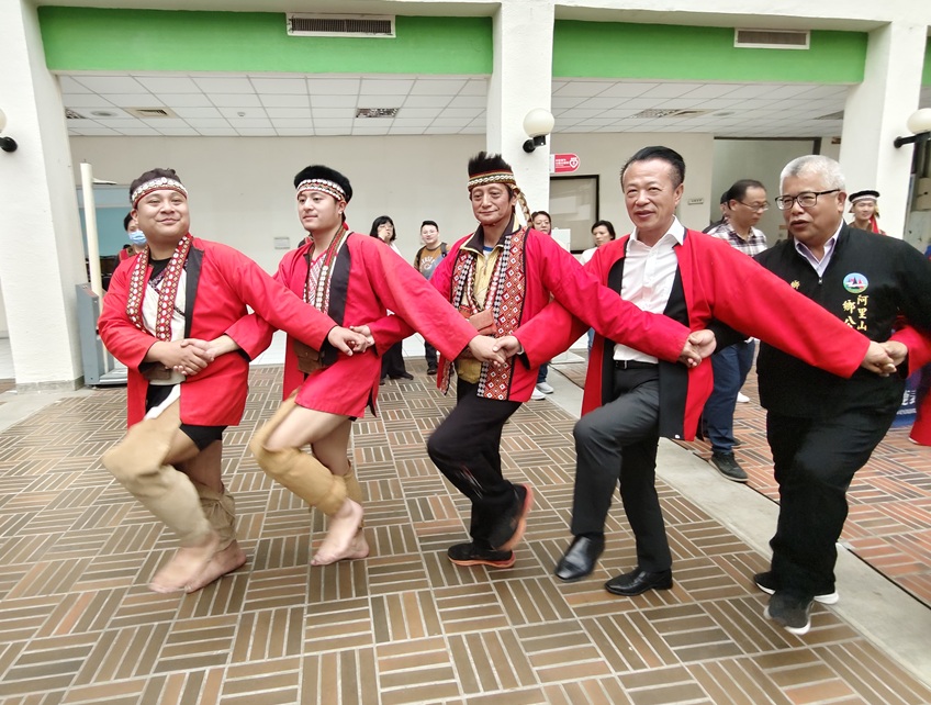 嘉義縣長翁章梁、阿里山鄉長高瑞芳及多位縣議員等人在記者會中一起牽手,開心跳起「大圍舞」為燈會祈福,也提前帶出燈區的互動特質,氣氛熱絡。