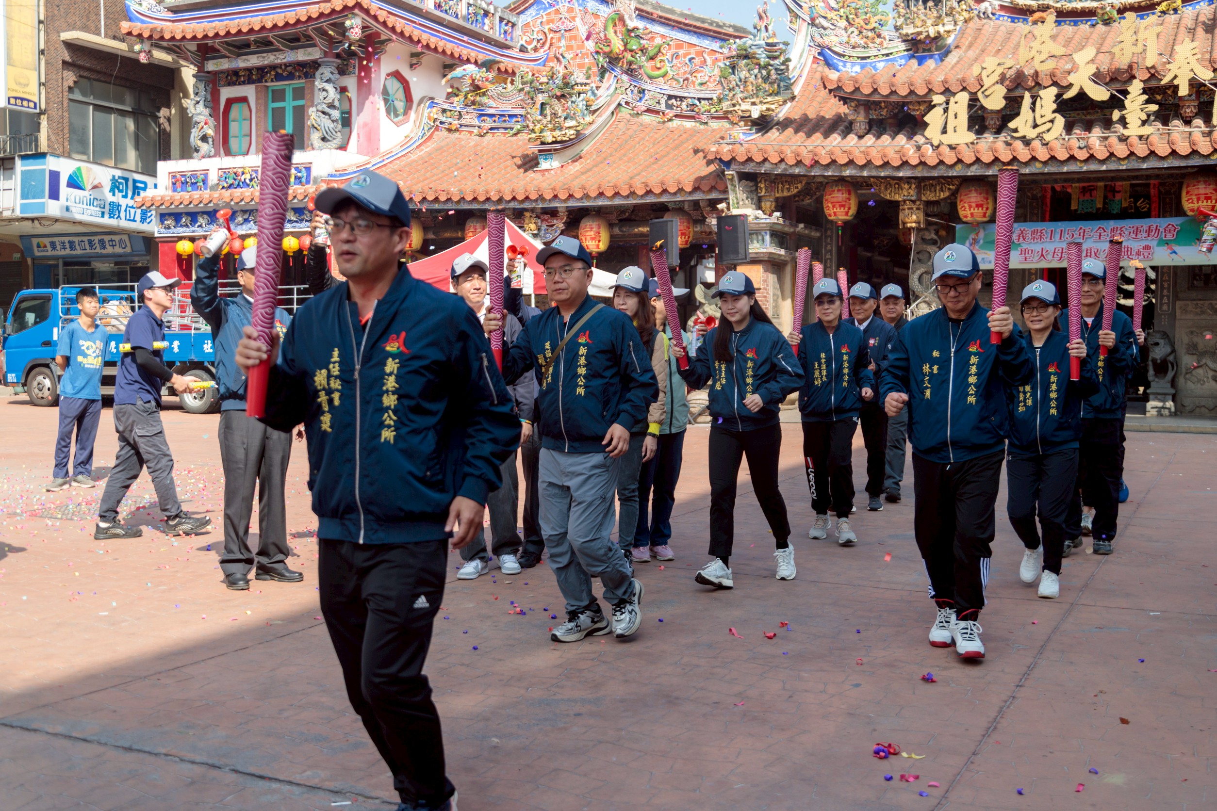 嘉義縣全縣運動會在新港奉天宮聖火母火取火,將在3天內傳遞繞行18鄉鎮市。(圖/嘉義縣政府提供)