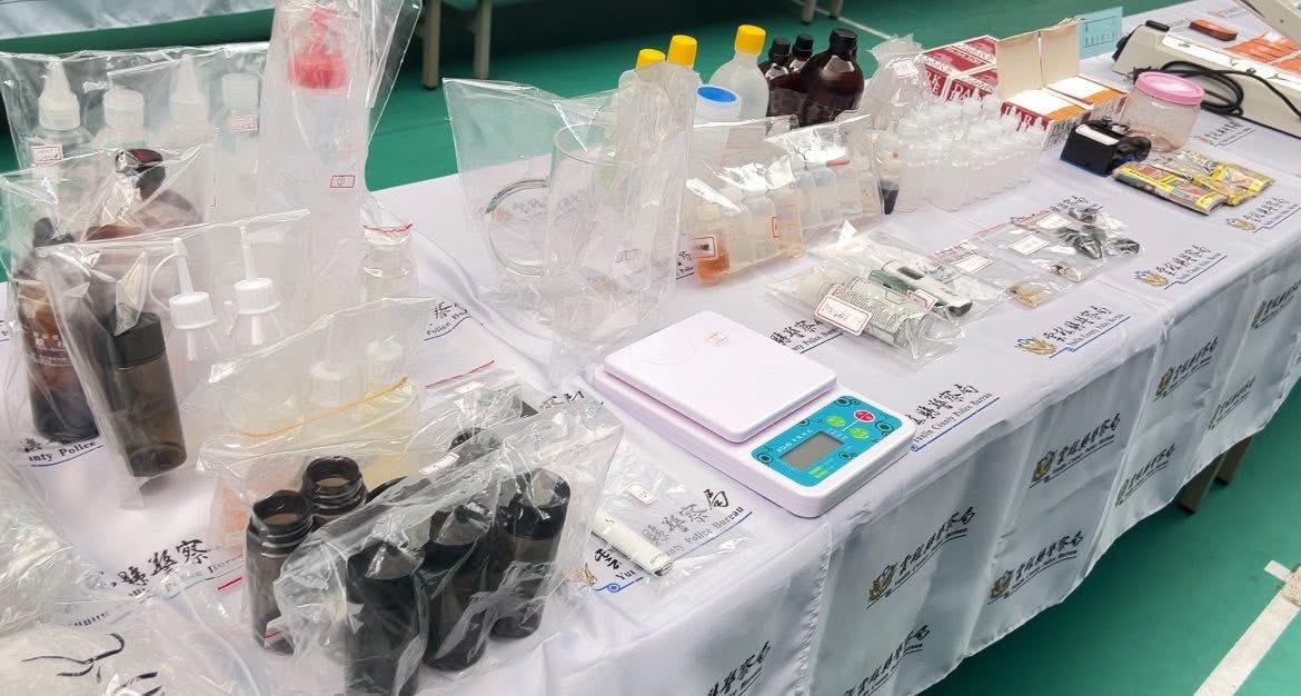 第一案由趙○明(46歲)主導,他在高雄市大樹區設立專業分裝據點製作喪屍菸彈,並在雲林北港鎮持有大量毒品據點。警方搜索時,查獲海洛因數包、甲基安非他命淨重120公克,以及依托咪酯原液、煙油與煙彈成品。高雄分裝場內,警方還查扣完整製毒設備,包括振波器、丙二醇、甘油、量杯、試管、攪拌棒、彈殼及分裝瓶等器具。