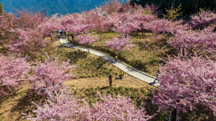 梨山風景區部分,民眾可搭乘臺中市公車153路自高鐵臺中站出發直達谷關,沿途步行捎來步道,欣賞壯闊谷景,並順遊谷關溫泉區,享受泡湯放鬆的療癒走春行程;另正值櫻花盛開時節,亦可預約搭乘臺中市公車865路前往梨山,走訪希利克步道、櫻緣丘及福壽山農場等景點,在粉色花海與山林景致中漫步賞櫻,感受高山春節限定的浪漫風情。