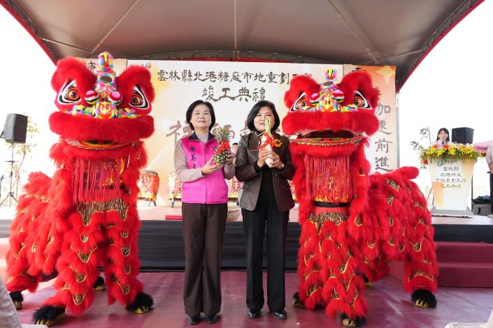 竣工典禮由縣長張麗善主持,立委張嘉郡、副縣長陳璧君、議員黃文祥、北港鎮長蕭美文、鎮代會主席黃美蘭、縣政副總顧問吳修榮、台糖公司副總經理蔡東霖,以及多位里長與鄉親共同參與,共襄盛舉見證北港城市發展的重要里程碑。(照片/記者 蘇榮泉 翻攝)