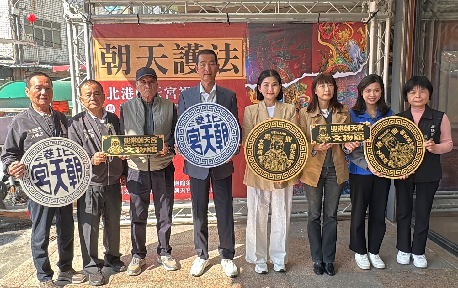 文觀處長謝明璇表示,今天圍繞著第一代與第二代祖媽神轎的門神,則是來自雲林在地出生的人間國寶畫師洪平順的彩繪門神作品,這七組門神將環繞著北港朝天宮舉世聞名的第一代與第二代祖媽轎,向全世界對宗教、信仰、文化、藝術有興趣的朋友開放,預計將在農曆新年期間採限額限時的方式開放參觀攝影。