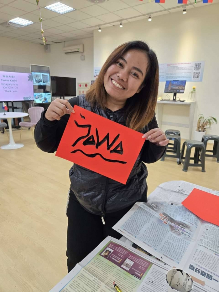 本次新春同樂活動現場氣氛熱鬧溫馨,也特別安排美髮義剪,協助移工整理儀容,以清爽面貌迎接新年與新工作;同時設置春聯摹寫體驗區,讓移工親手臨摹寫下具有祝福意涵的吉祥字句。有移工剪完頭髮對著鏡子露出笑容,也有人拿著毛筆認真寫春聯,彼此分享對新年的期待,工作人員也趁著互動,用移工熟悉的語言進行權益及流程說明,讓重要資訊在輕鬆聊天中自然傳遞。