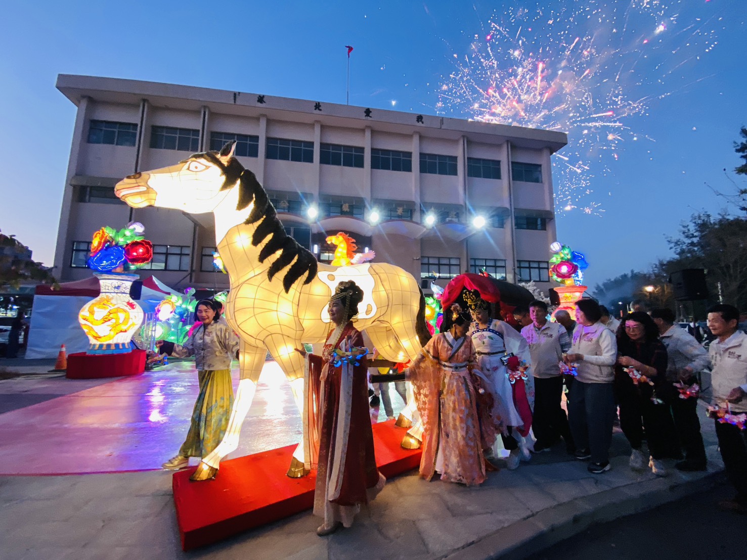 北港鎮公所元宵花燈活動「金馬飛天~馬上成功」於13日晚間在親民廣場舉行啟燈典禮與音樂晚會。