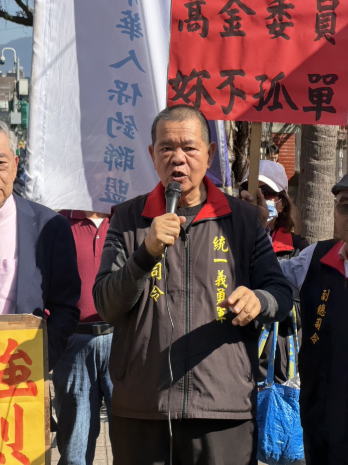 對此,2月13日上午,統一義勇軍總司令(拔菜總司令)盧朝財率眾前往立法院門口舉行抗議活動,聲援高金素梅委員,並表達對司法偵辦方式的不滿。現場參與者包括藍天行動聯盟主席武之璋、金介壽議員、抗日協會長王啟斌、和平大使黃雅婷,以及中華家國雜誌社長梅峰等人。