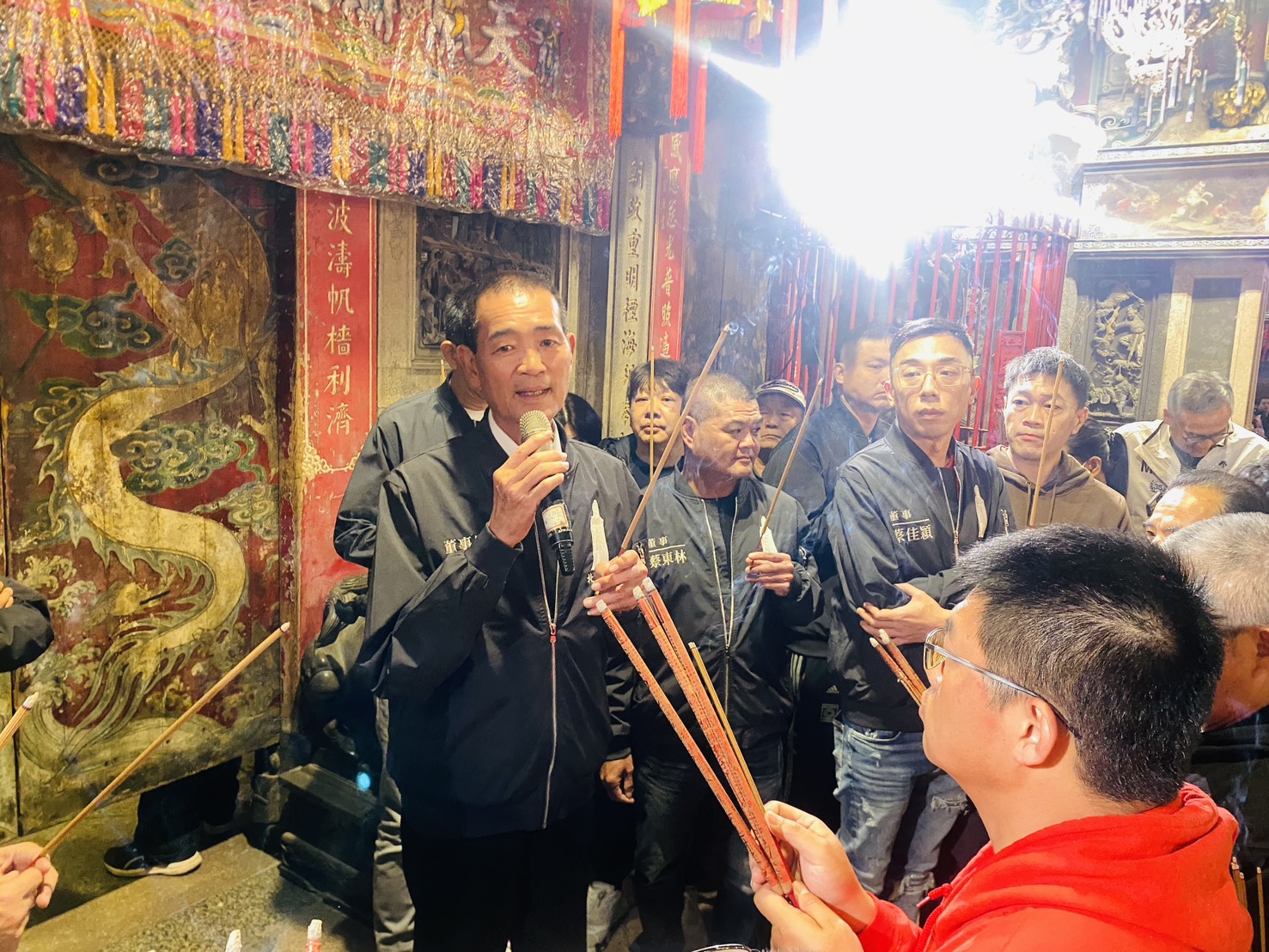 蔡咏鍀向民眾說明「拜頭香」的意義,強調祈福重在平安與誠心,若因爭搶受傷,父母與媽祖都會不捨。(記者蘇榮泉攝)