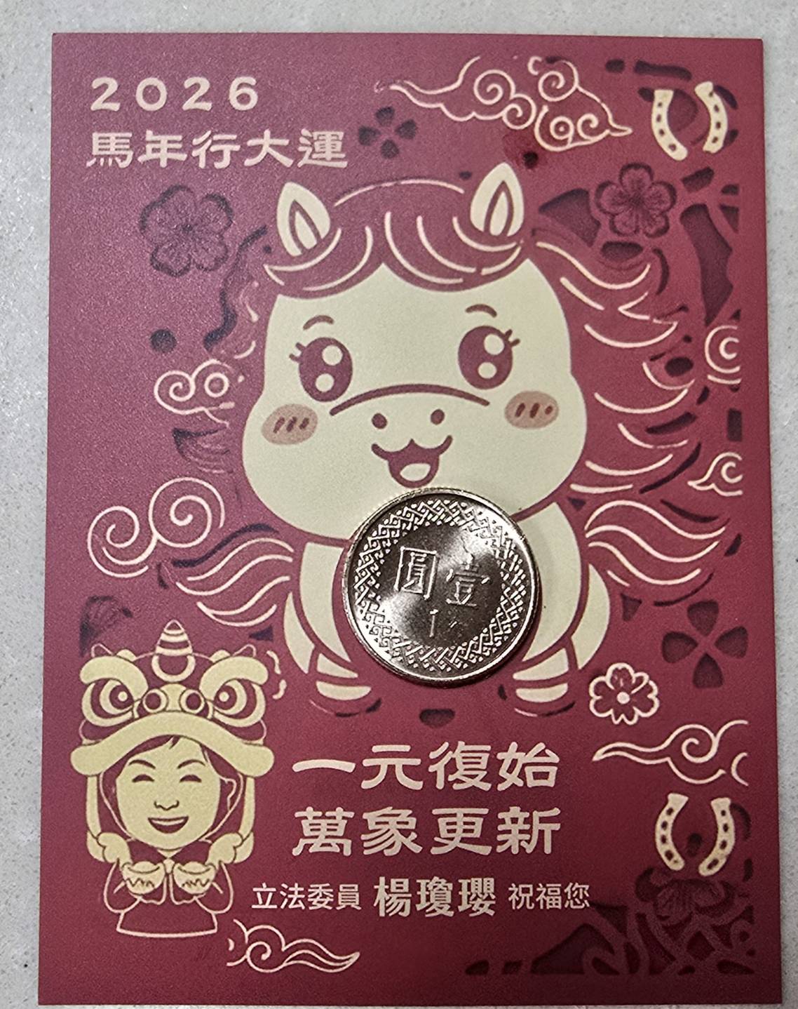 在發放祝福卡的同時、楊瓊瓔委員在致詞中、首先感謝鎮安宮長久以來對后里鄉親的精神支持、以及到場各界貴賓的共襄盛舉、她指出、新的一年代表著新的開始與無限的可能、而一枚小小的銅板、卻蘊藏著對未來的無限期許、她強調這次活動不僅是節慶的延續、更是連結民心、感受地方脈動的重要時刻。
