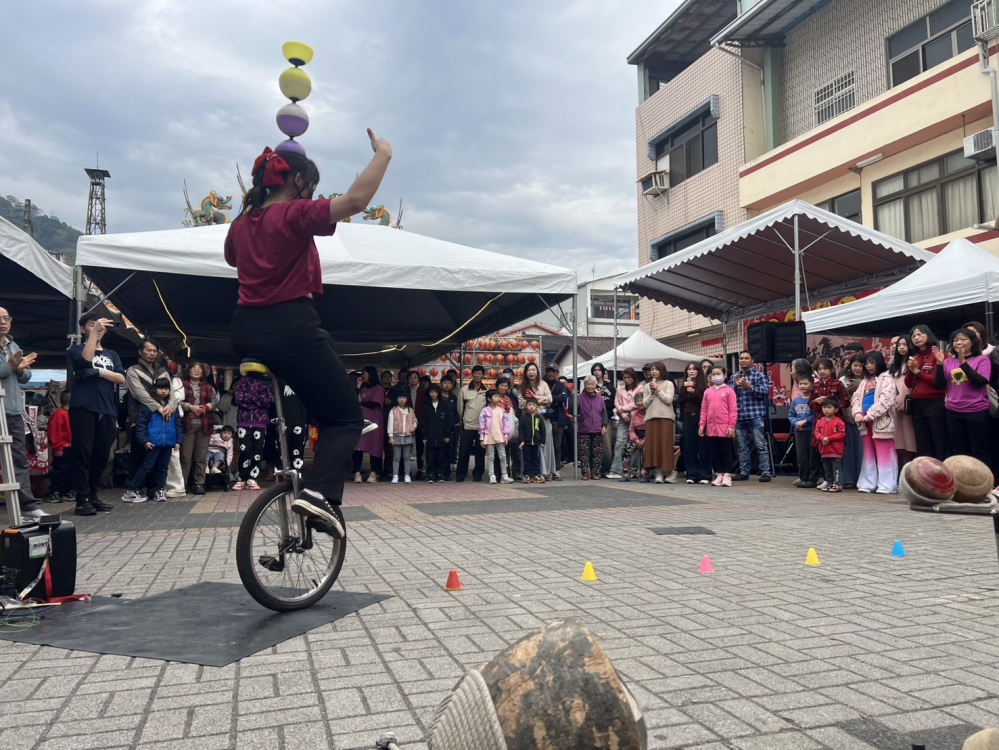 在泰興宮前廣場,成功國小校長張文煌帶領小朋友展現精彩的歌舞表演;陀螺達人賴爺爺祖孫兩人使出渾身解數「打極樂」;大茅埔社區媽媽們在台上展現自信才藝表演,讓圍觀的年輕晚輩和觀眾們讚不絕口,掌聲連連,為社區的活力感到驕傲!
