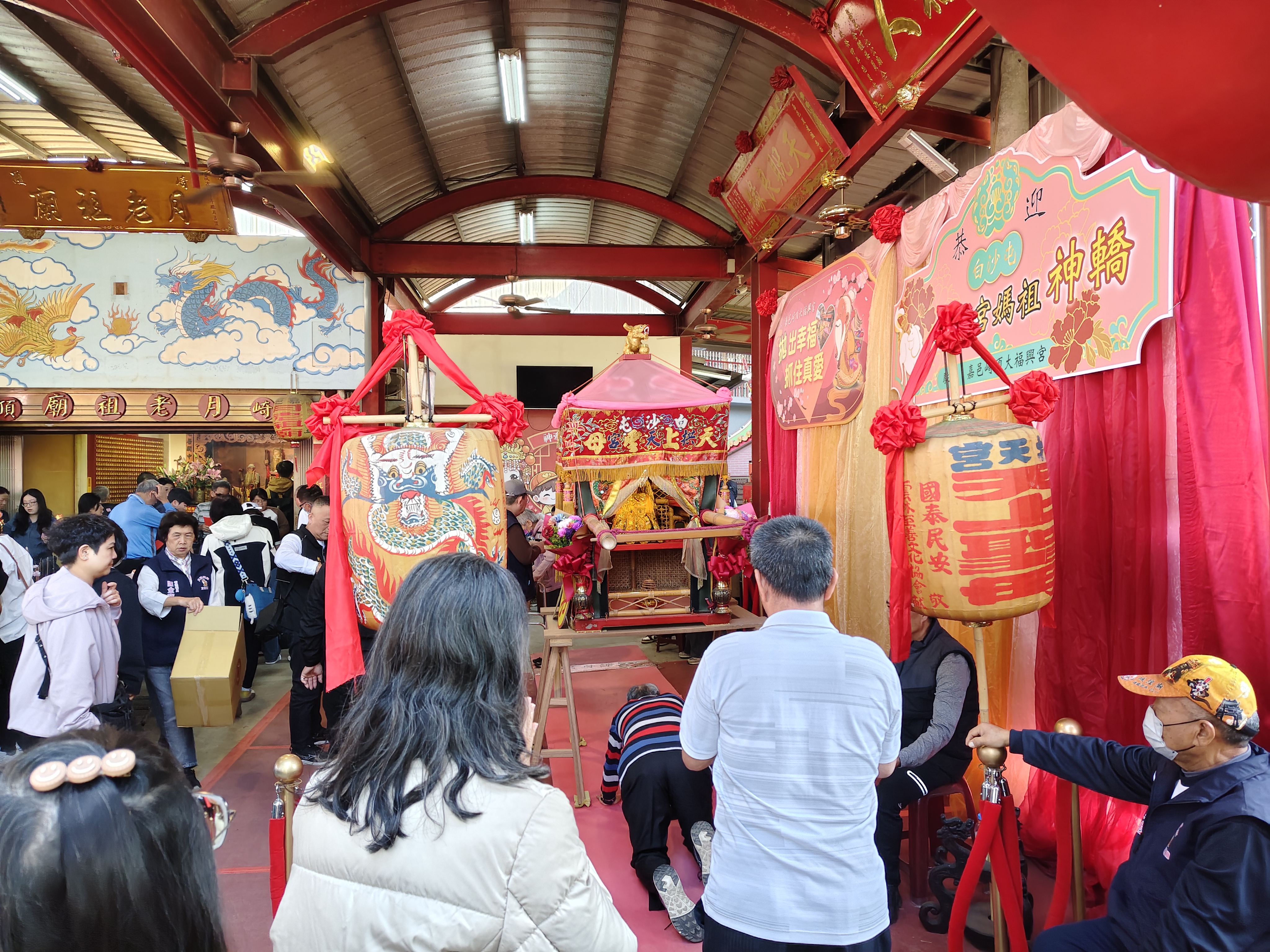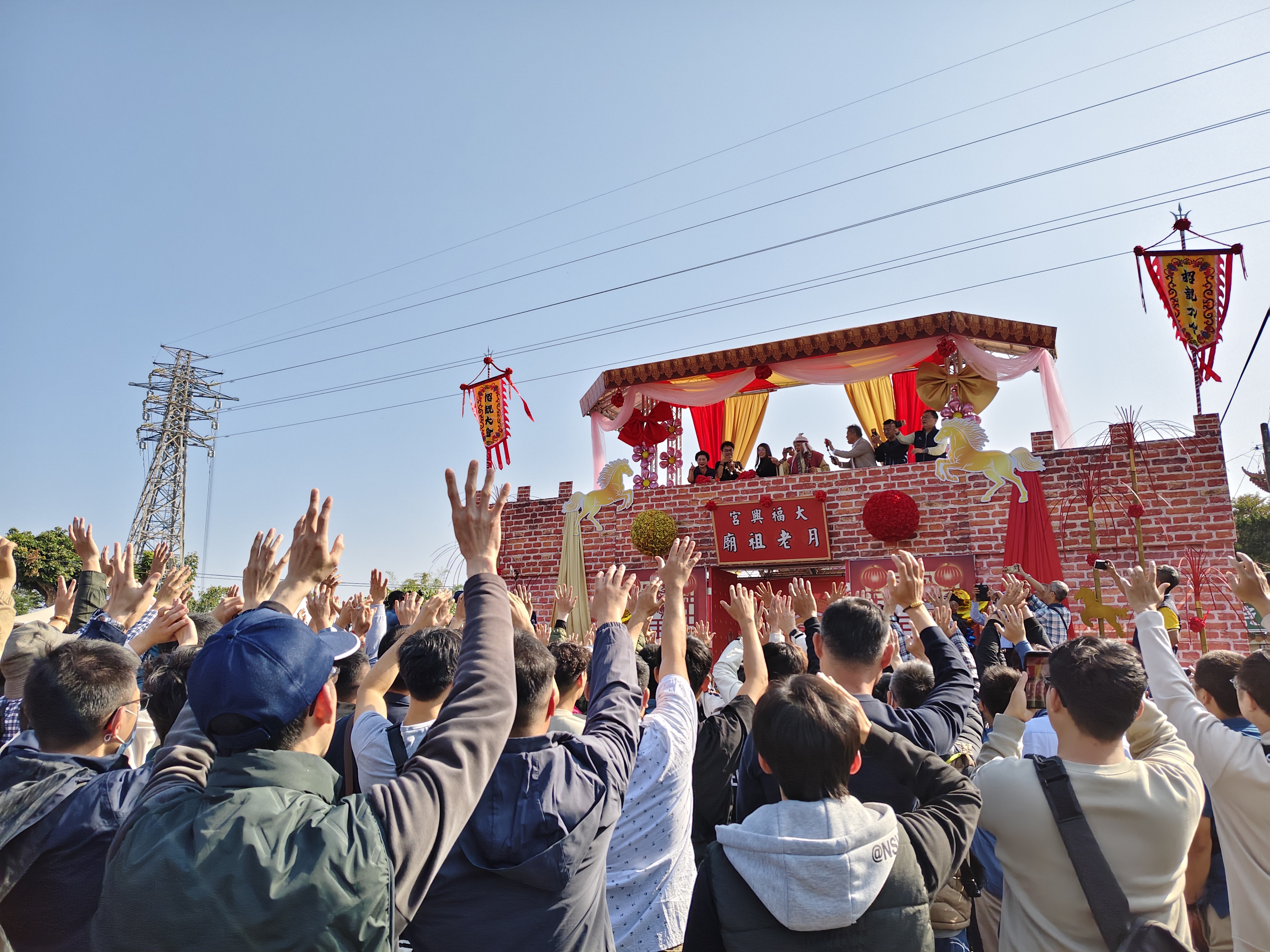 白沙屯媽祖春節期間駐駕大福興宮月老祖廟,吸引信眾鑽轎腳祈福求平安。(圖/記者任芳葵攝)