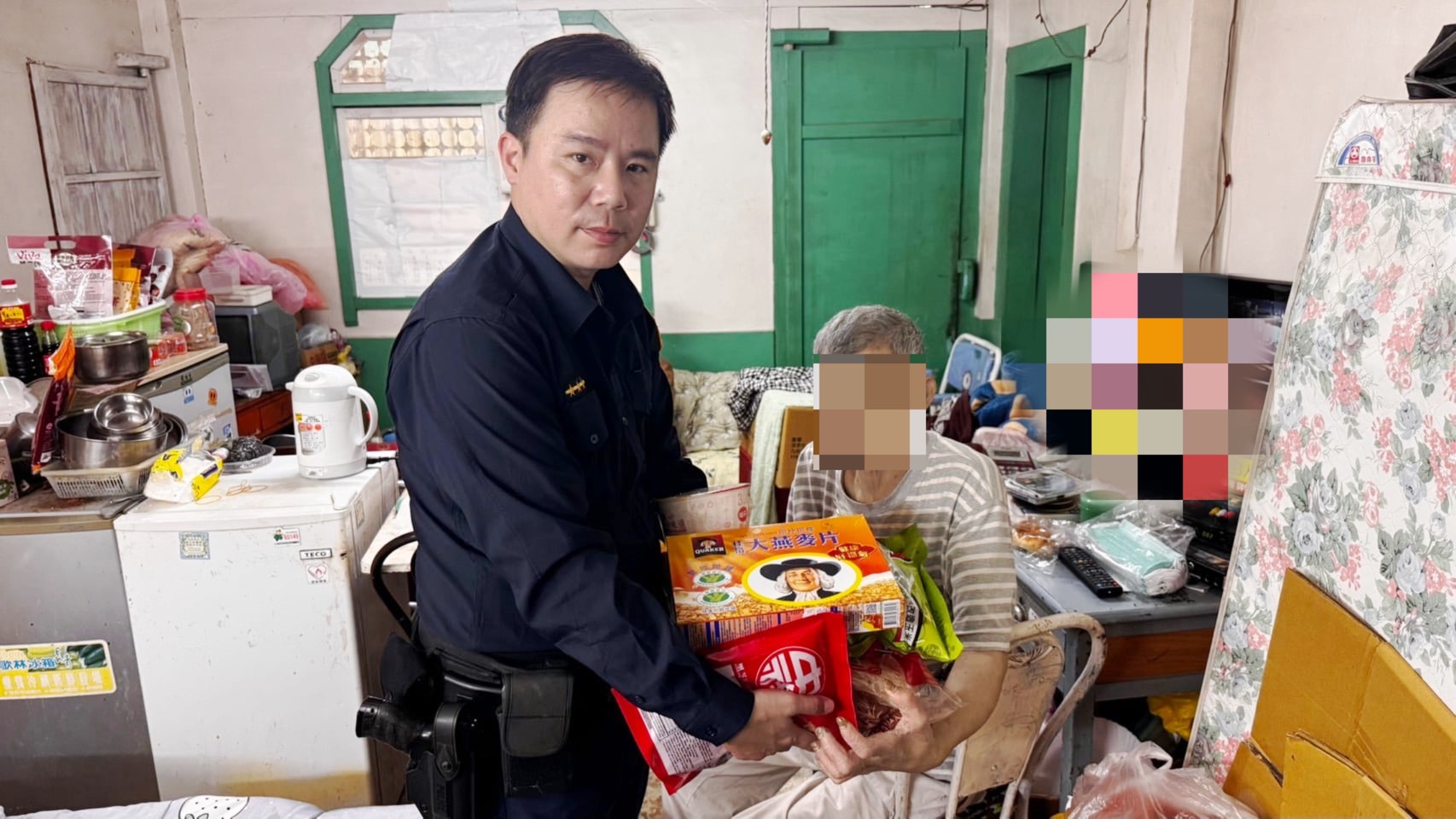 警方表示,62歲李姓男子因長期罹患糖尿病,身體狀況欠佳,且須照顧年邁母親。日前住院治療後,因行動不便,生活採買成為難題,家中糧食與生活物資短缺。北辰派出所警員李冠佑得知情況後,立即前往關懷,並結合善心資源致贈民生物資,減輕其經濟與生活負擔。