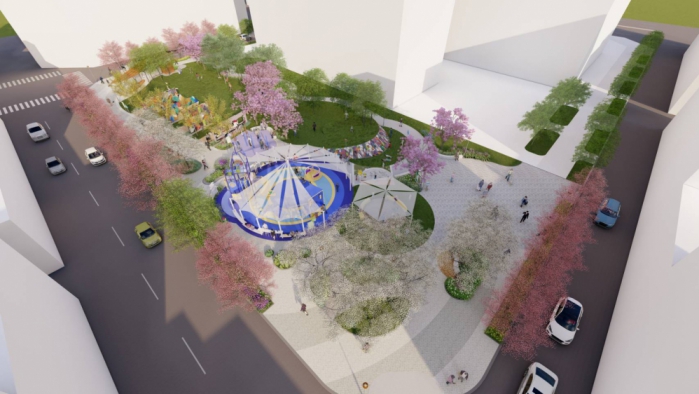 陳大田指出,公園面積為3,384平方公尺,整體設計以「街區再生、活力藝術」為核心理念,在保留歷史紋理基礎上導入當代表現語彙。公園內設置溜滑梯、遊戲沙坑及「市場家家酒」主題設施,讓孩童在遊戲中延續市場生活意象;體健區則配置銀髮友善運動器材,完善鄰里健康空間;另設塗鴉主題牆作為視覺焦點,提供創作與交流場域,拉近藝術與市民距離。