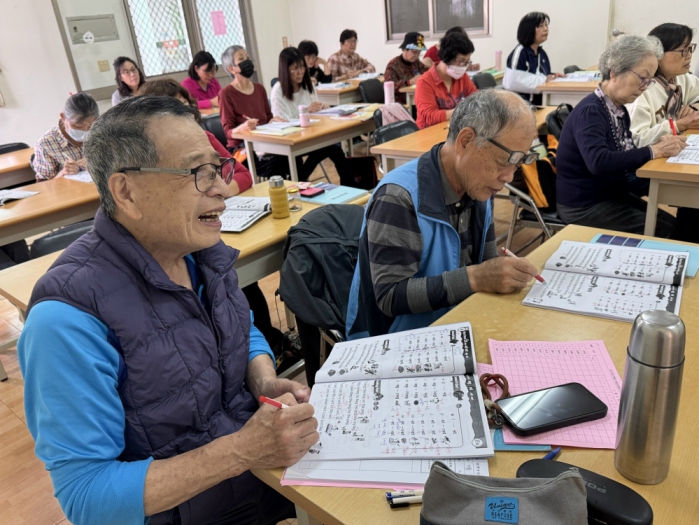 在瑜伽教室中,學員們專注於伸展與平衡訓練,在專業老師引導下舒緩筋骨、強化體能;英語課堂上,長者們認真翻閱教材、逐字練習發音;書法教室內墨香四溢,學員們凝神運筆,一筆一畫展現沉穩與專注。透過多元課程安排,充分展現樂齡族群持續學習、積極生活的精神風貌。