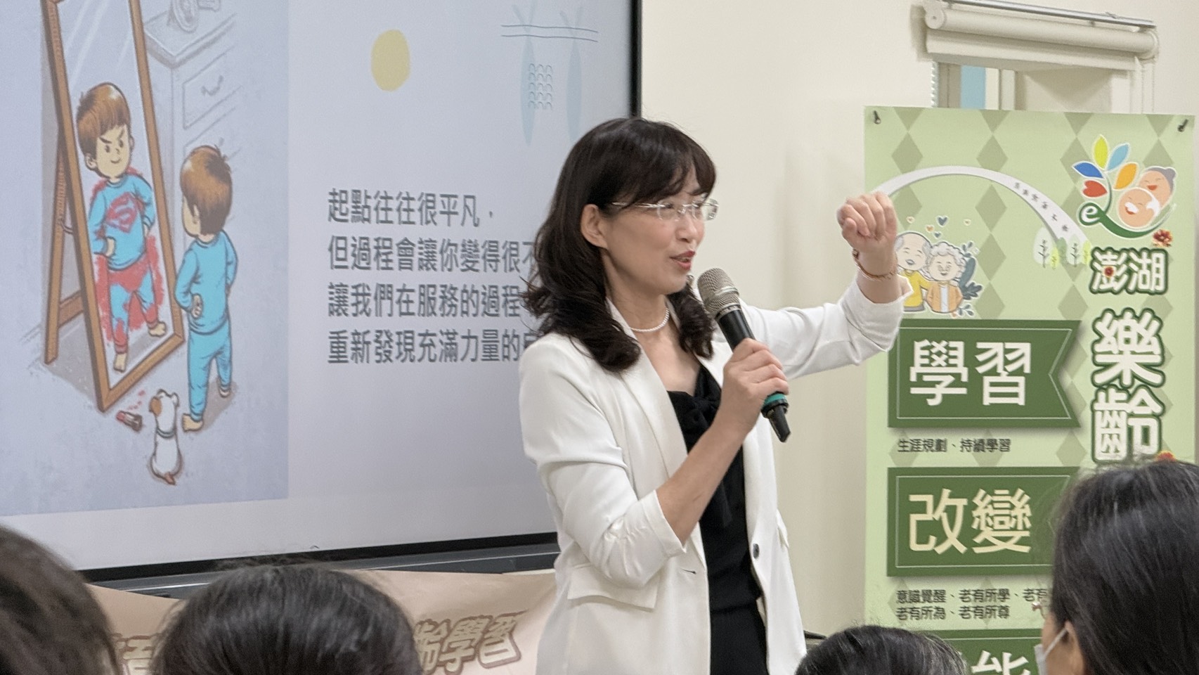 「樂齡學習總輔導團」協同主持人李藹慈教授前進離島澎湖推動高齡學習。(圖/國立中正大學提供) 高雄樂齡示範中心吳雅茹主任突破傳統志工框架,透過「五級分級制度」,志工不再僅從事庶務,而是透過賦能課程,這群志工不僅協助中心數位紀實、減輕行政負擔,更走出校園進入社區貢獻服務。不僅實現自我超越,更成為中心發展的最強後盾。