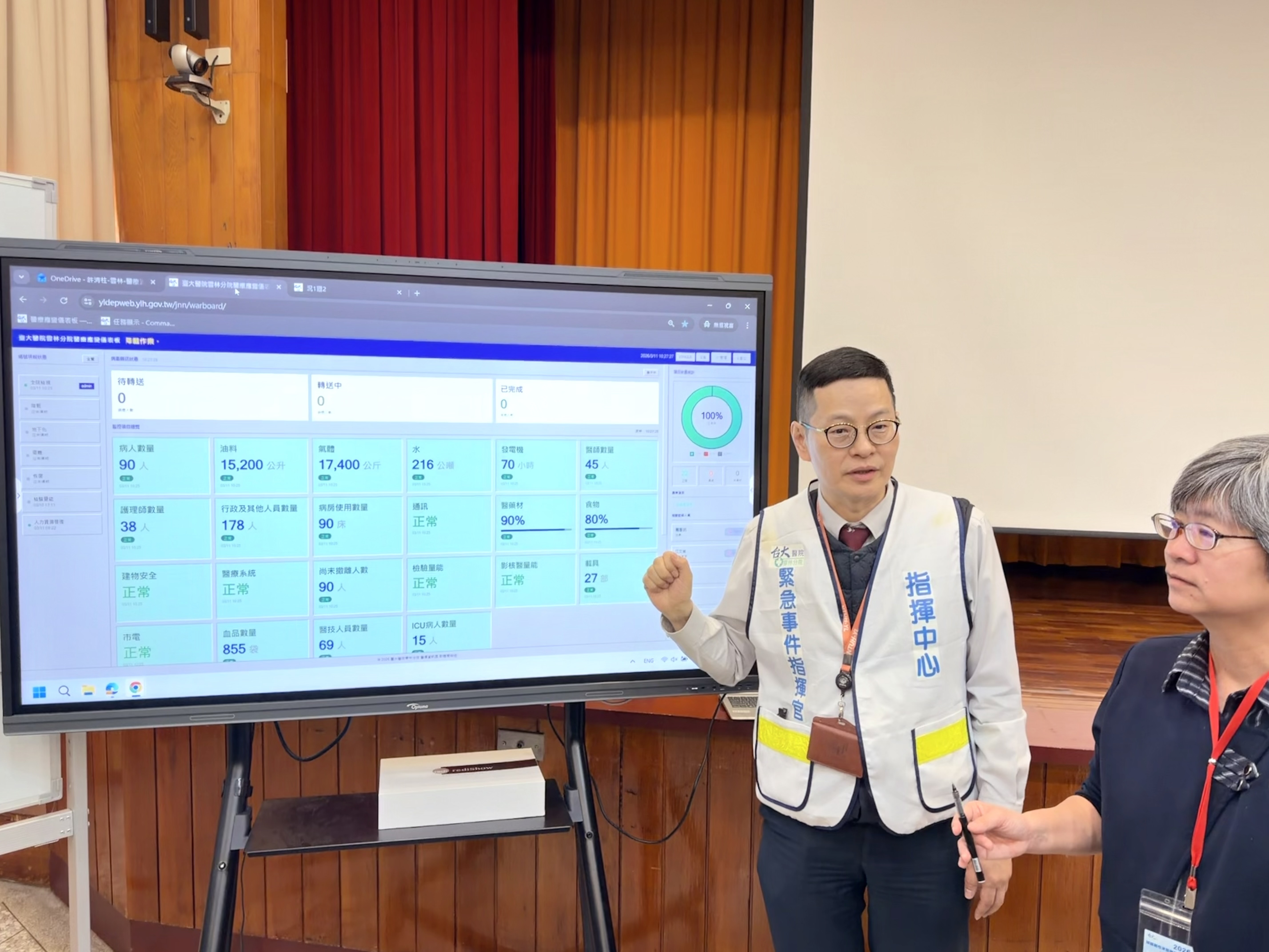 演習同時也模擬極端情況下的病患與醫療人員撤離機制,透過現場討論與決策演練,檢視醫療體系在災害情境中的決策流程與資源調度能力。院長馬惠明表示,此次承辦國家級示範演習,是對醫院標準作業程序的重要壓力測試,未來將持續優化醫院應變機制。