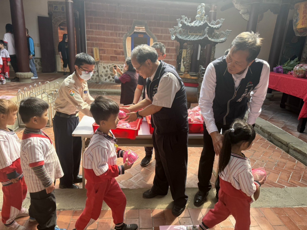 禮成後吳局長、顏區長也逐一分送壽桃、希望大家都吃長壽、學生能學業進步、金榜題名,並且提供參與會民眾品嚐平安湯圓,熱鬧的活動直到中午結束。